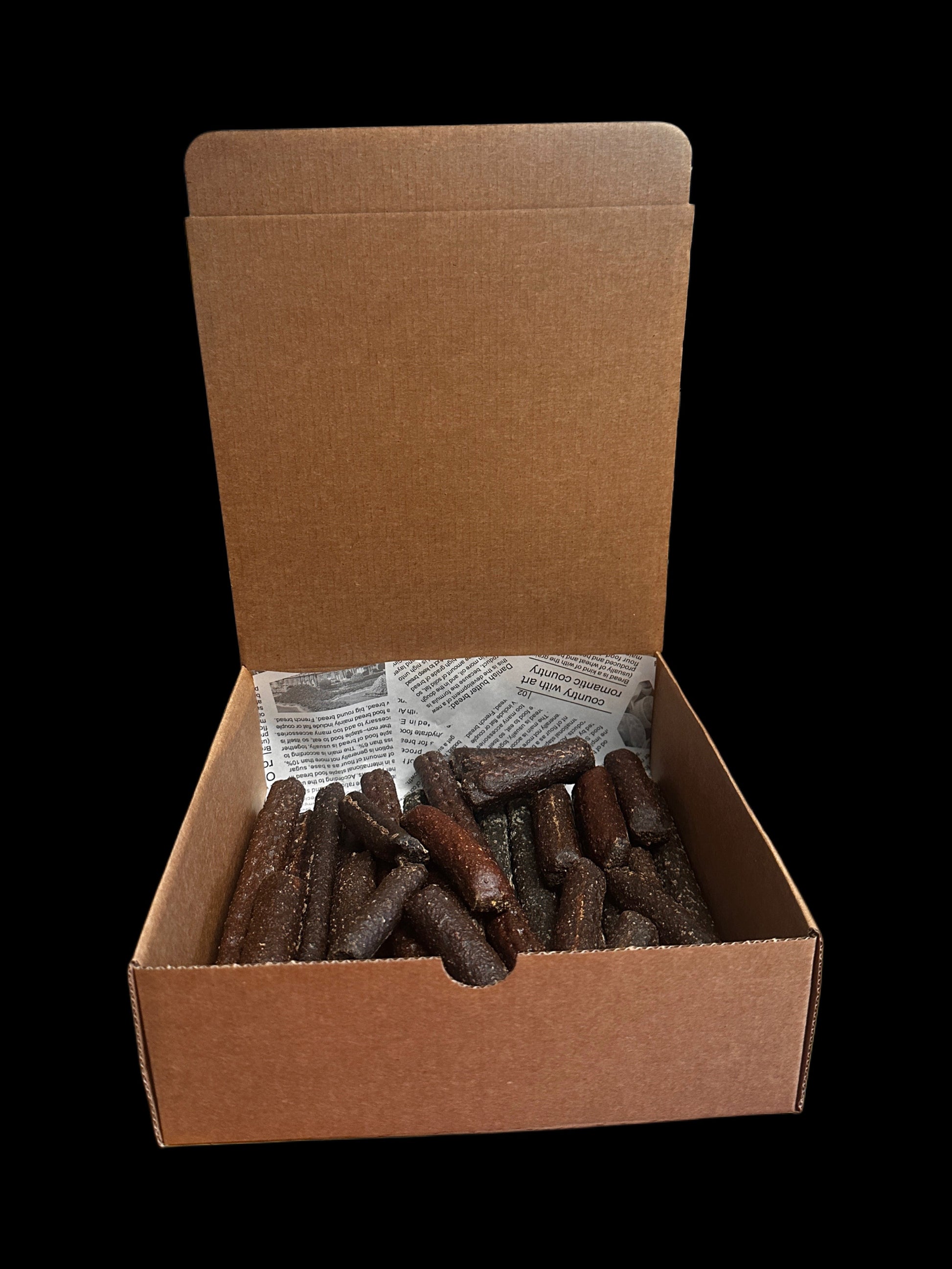 Satisfy your dog's cravings with our gourmet beef and veg, venison, salami, cheese, and mini liver sausages. These delicious treats are not only tasty, but also carefully selected for their health benefits. They are ideal for all dog breeds and sizes, and can even be used as training treats for dogs with allergies or digestive sensitivities. Our responsibly sourced ingredients and scrumptious flavors are guaranteed to please your furry friend's palate. Choose nothing but the best for your dog!
